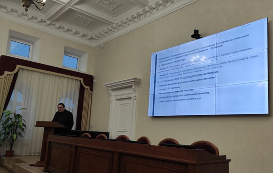- Заведующий лабораторией Многофакторного гуманитарного анализа и когнитивных технологий – доктор филологических наук Алексей Андреевич Арзамазов, рассказал о фундаментальных исследованиях уникального исторического наследия города Чистополя и популяризации этих знаний, об изданных двух книгах Н.М. Валеева и других публикациях, посвященных благотворительной деятельности чистопольского купечества, творчеству Бориса Пастернака и феномену Чистополя в целом.